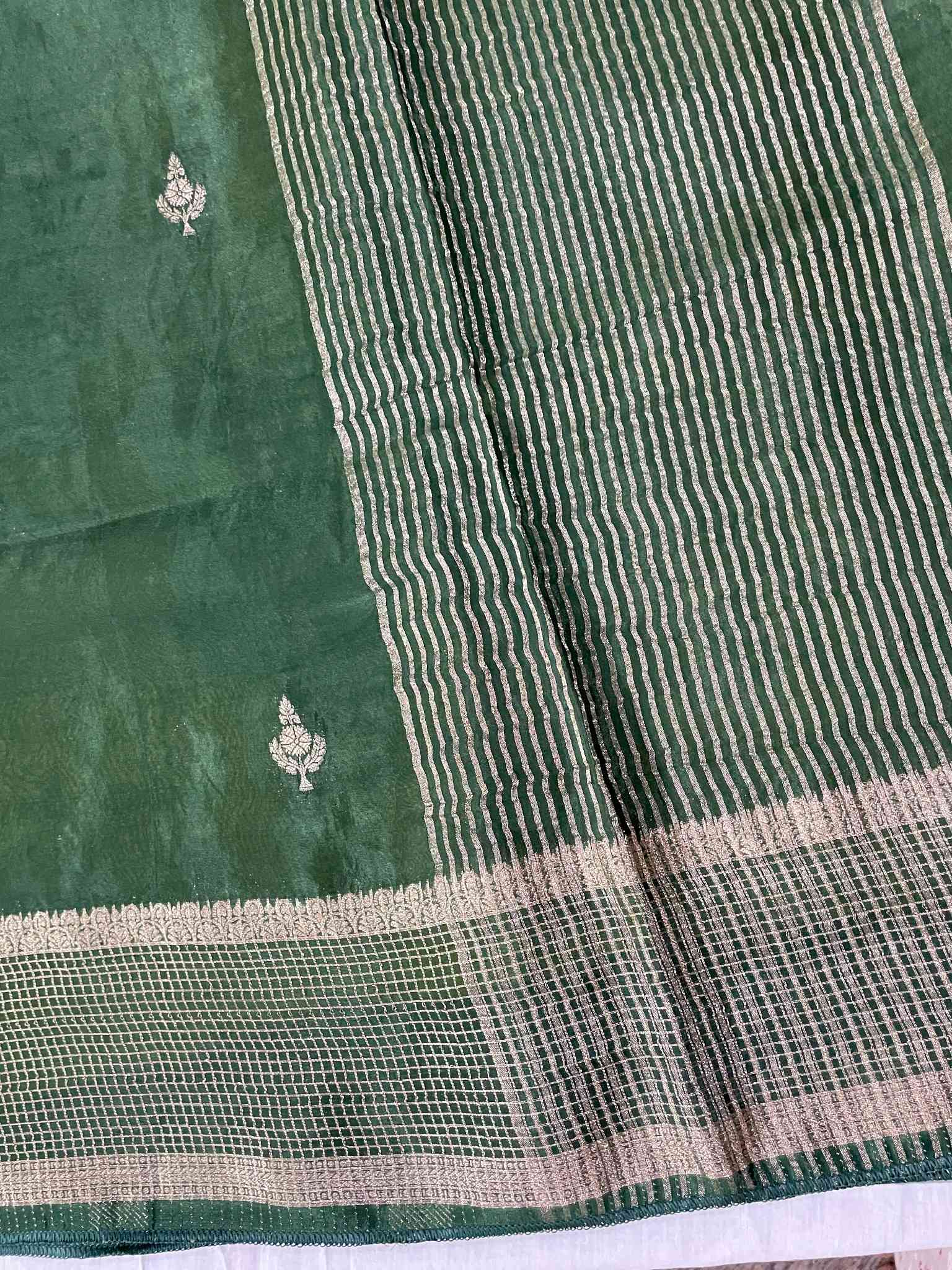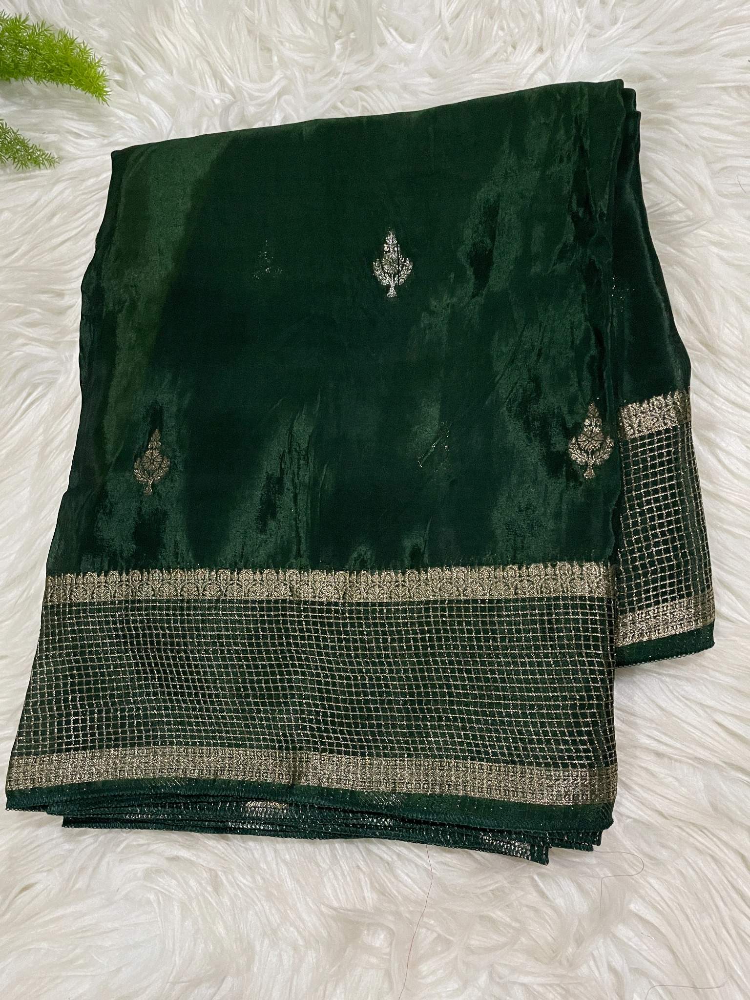 Bottle Green Viscose Crepe Saree A timeless piece in rich bottle green, this viscose crepe saree drapes beautifully for any occasion. The fluid fabric moves with grace, making it ideal for celebrations, festivals, or everyday elegance.